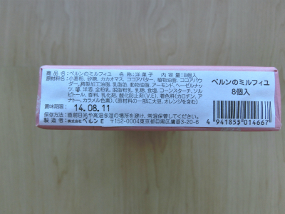 ちなみに賞味期限は、ベルンのミルフィユの包装パッケージ側面に書いてあります。