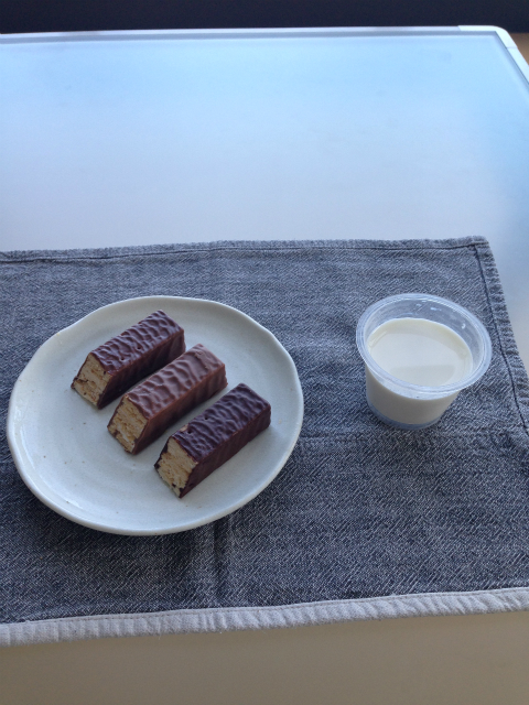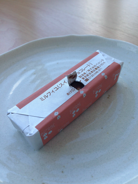 常温のままでは、チョコレートコーティングが溶けてミルフィーユの包装も剥きにくいですし、剥いた後もベトベトになってしまいます。