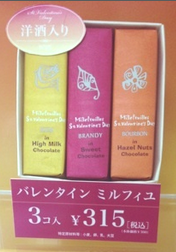 キャッチフレーズとしては、「洋酒がこんなにあうなんて」「バレンタイン ミルフィユ」「ベルンのミルフィユが、ラム酒とバーボン、ブランデーの洋酒と出会って、男性向きのミルフィユになりました。心までほろ酔いハッピーな気分にしてくれる贈り物でやさしい愛を届けましょう」となっています。