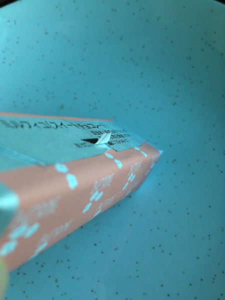 綺麗に一周できると、ミルフィーユのパッケージが左右2分割することになります。一方を慎重に外しましょう。